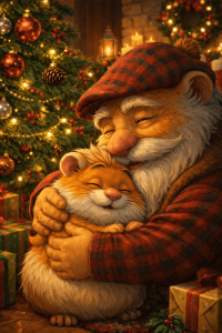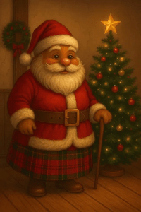 Pa wrapped his arms around Haimish in a big hug. “Och, laddie! Ya make mae heart yoong rememberin’ wut was! Nollaig Chridheil dhut!” (No-likh chree-yell ghoot! Merry Christmas!)