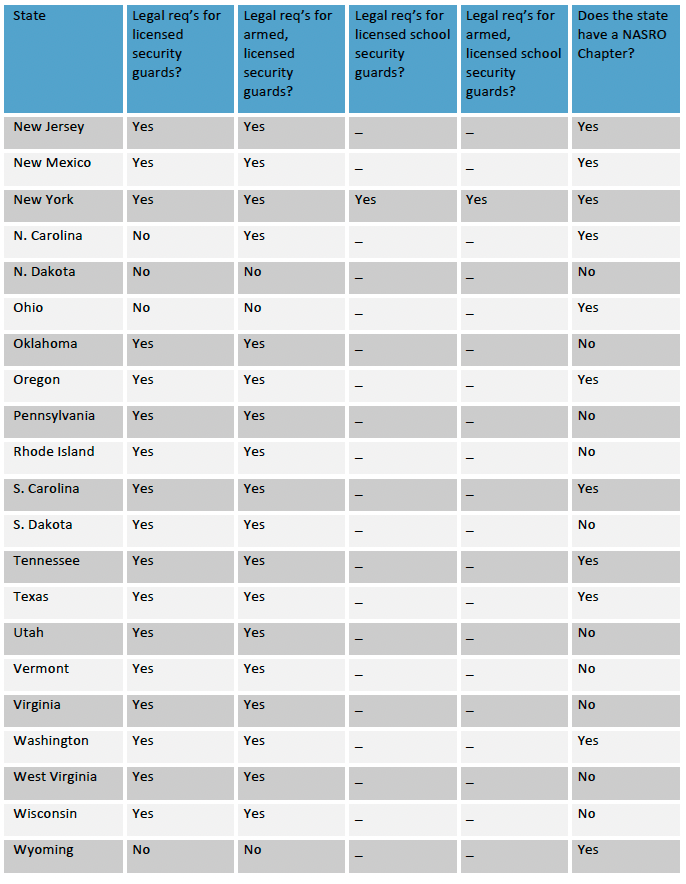 • Does the state have a National Association of School Resource Officers (NASRO) Chapter?